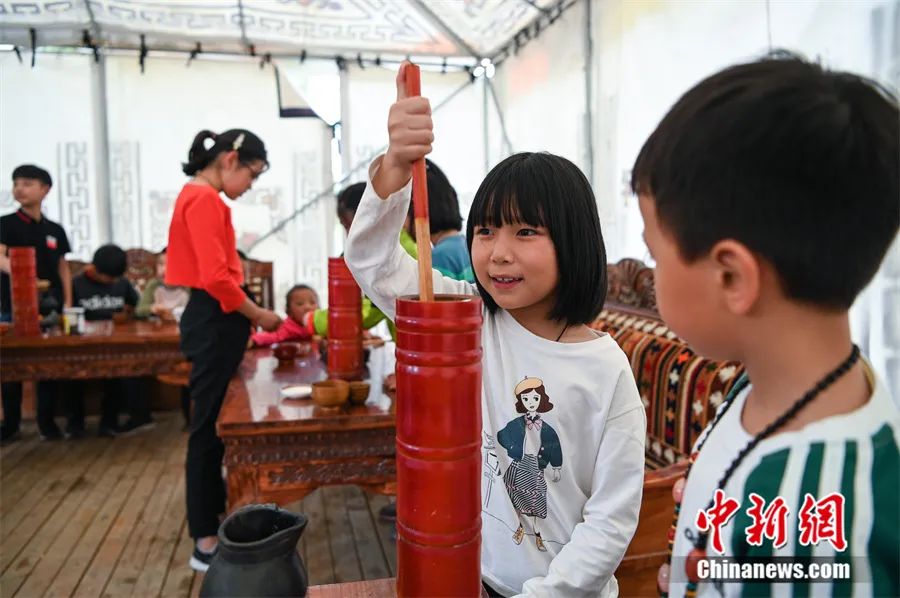 2019年7月,來自江蘇蘇州的小游客們在拉薩體驗(yàn)酥油茶制作。中新社記者 何蓬磊 攝
