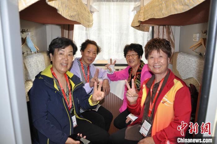 圖為乘坐首趟暑期進(jìn)藏旅游專(zhuān)列的旅客合影?;艚饌?攝