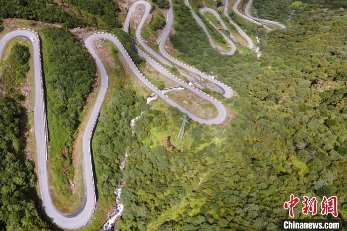 圖為西藏錯那縣勒布溝盤山公路與電力設施。江飛波 攝
