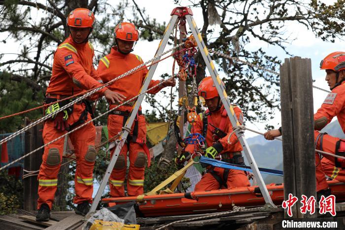 救援實戰(zhàn)訓(xùn)練中消防員將被困人員垂直提拉至安全位置。西繞拉翁 攝