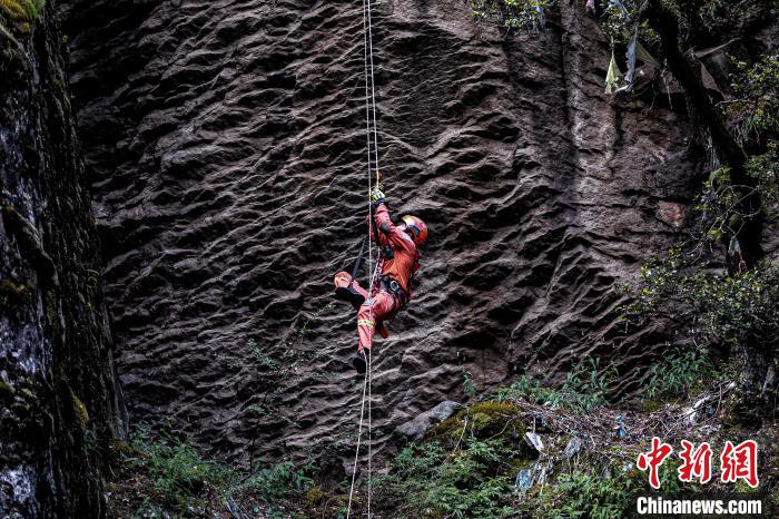 據(jù)悉,垂直崖壁救援是山岳事故救援行動中最難、最危險的科目之一,要求救援隊員在陡峭的崖壁上,尋找保護點、清理崖壁、建立保護站,利用繩索技術(shù),采用垂直提拉系統(tǒng)對墜落谷底的被困人員實施營救。