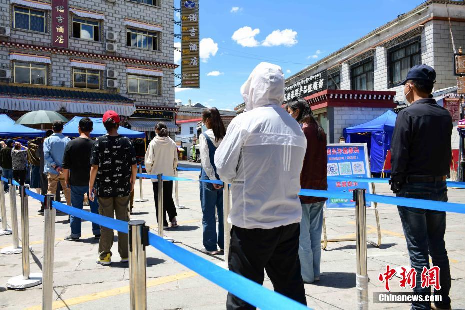 8月9日,西藏拉薩,市民在城關(guān)區(qū)八廓街道魯固社區(qū)的核酸檢測(cè)現(xiàn)場(chǎng)排隊(duì)進(jìn)行核酸檢測(cè)。當(dāng)前,西藏拉薩市設(shè)置545個(gè)核酸檢測(cè)點(diǎn)開展全員核酸檢測(cè)。 中新社記者 貢嘎來松 攝