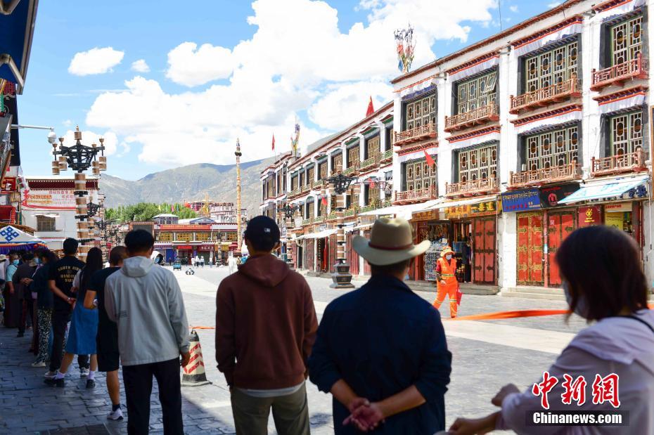8月9日,西藏拉薩,市民在城關(guān)區(qū)八廓街道的核酸檢測(cè)現(xiàn)場(chǎng)排隊(duì)進(jìn)行核酸檢測(cè)。當(dāng)前,西藏拉薩市設(shè)置545個(gè)核酸檢測(cè)點(diǎn)開展全員核酸檢測(cè)。 中新社記者 貢嘎來松 攝