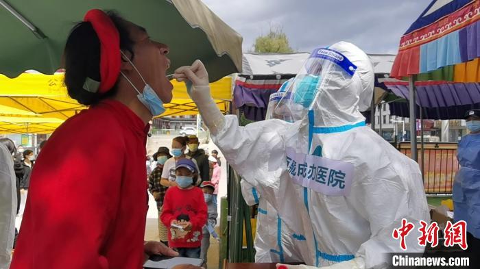 圖為西藏自治區(qū)人民政府駐成都辦事處醫(yī)院醫(yī)療隊在拉薩檢測點為民眾進行核酸檢測 西藏自治區(qū)人民政府駐成都辦事處醫(yī)院醫(yī)療隊 供圖
