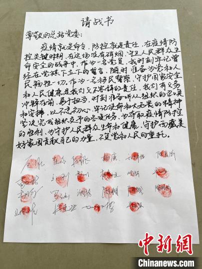 圖為執(zhí)法調(diào)查支隊(duì)民警寫下請戰(zhàn)書,簽名并按手印。陸鑫 攝