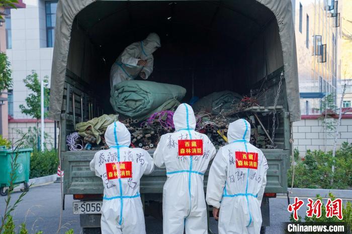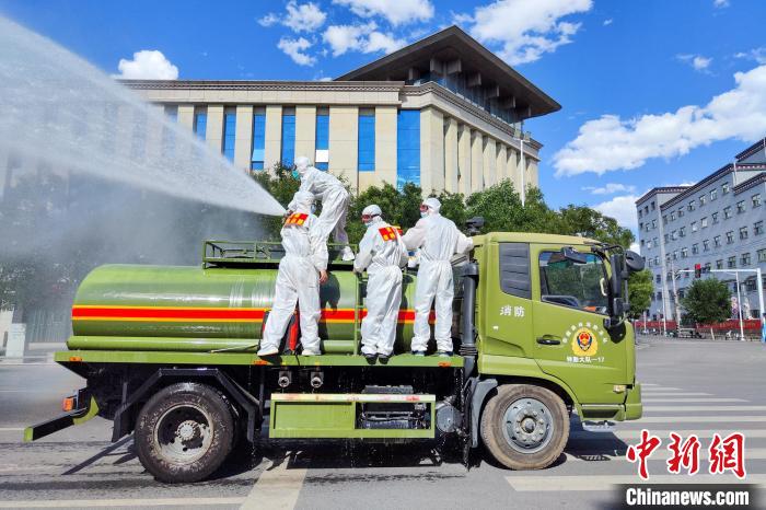 西藏森林消防特勤大隊利用水罐車對重要區(qū)域進行消殺。西藏森林消防總隊 供圖