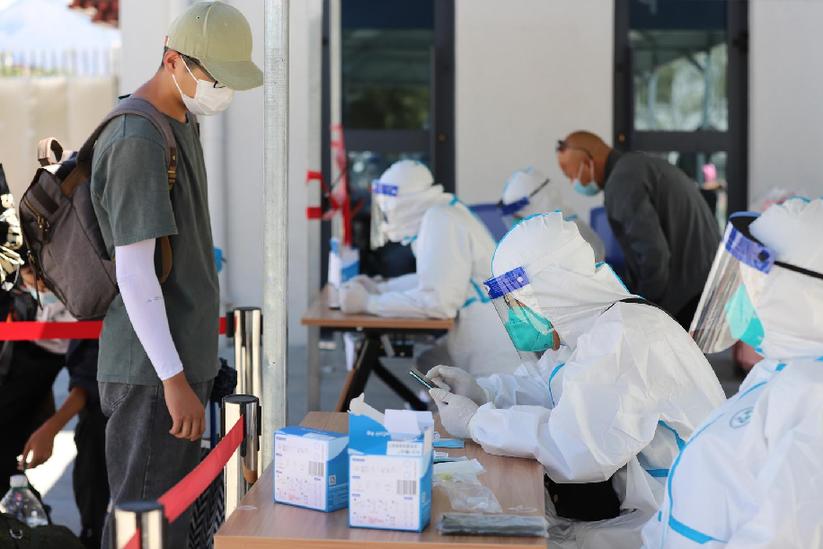 安檢大廳門(mén)口的工作崗?fù)?nèi),四張長(zhǎng)桌搭建起“二道”卡控點(diǎn),6名“大白”對(duì)進(jìn)站旅客進(jìn)行著一人不落的“三天兩檢”核酸檢測(cè)陰性證明查驗(yàn),查驗(yàn)通過(guò)后方可進(jìn)入“三道”卡控點(diǎn)進(jìn)行抗原檢測(cè)?!霸趪?yán)密落實(shí)自治區(qū)疫情防控各項(xiàng)措施中,我們不講條件、不打折扣、不惜代價(jià)。今天早上,我們邀請(qǐng)青藏集團(tuán)公司疾控專業(yè)人員對(duì)車(chē)站全員進(jìn)行了緊急的抗原檢測(cè)流程培訓(xùn),做足準(zhǔn)備全力應(yīng)對(duì)挑戰(zhàn)和考驗(yàn),確保執(zhí)行、落實(shí)到位。”拉薩火車(chē)站黨委書(shū)記楊強(qiáng)說(shuō)。