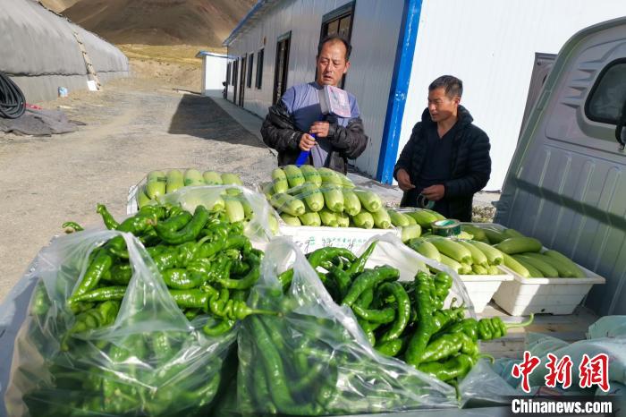 9月23日,西藏康馬縣高原溫室大棚采摘上市的蔬菜?!∈茉L者供圖