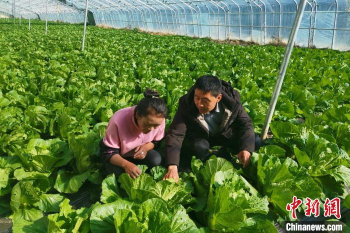 來(lái)自山東壽光的孟德利(右)在西藏康馬縣蔬菜大棚內(nèi)?!∈茉L者供圖