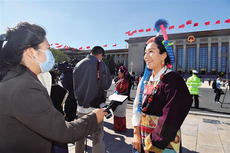 走出人民大會堂的西藏代表團代表,意氣風發(fā)、豪情滿懷,他們暢談參會收獲,紛紛表達堅持以習近平新時代中國特色社會主義思想為指引,認真貫徹落實黨的二十大精神,開啟新征程、續(xù)寫新篇章的信心決心。