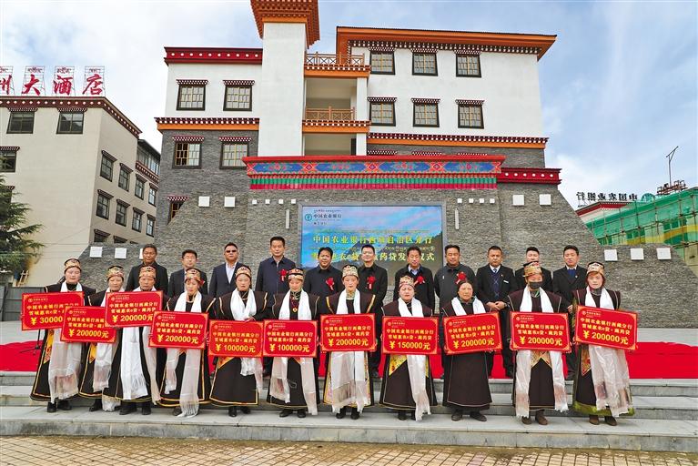 農(nóng)行林芝分行聯(lián)合林芝市旅游發(fā)展局創(chuàng)新推出“318·幸福旅游貸”,這是發(fā)放儀式現(xiàn)場。