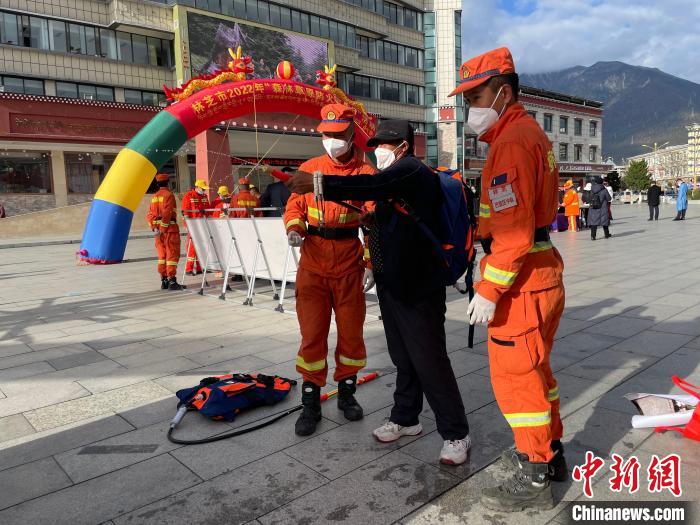 消防隊員正在教授裝備使用方法?!≡辣?攝