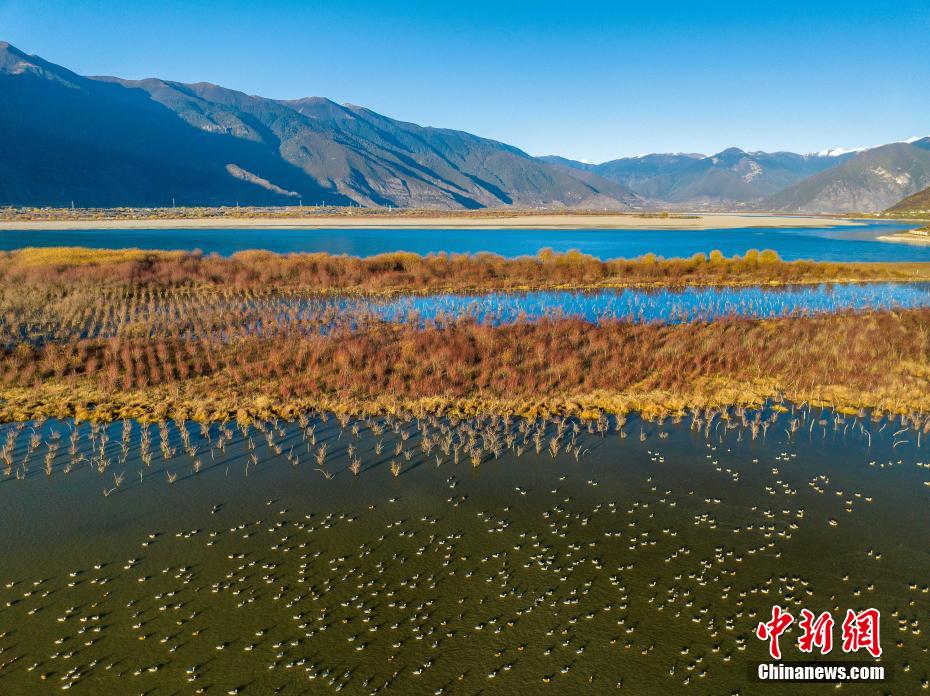 11月19日,西藏林芝雅尼國家濕地公園內成群的斑頭雁。 董志雄 攝