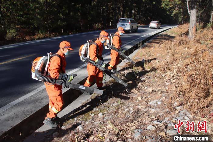 踏查中,中隊出動20人,編排成3個小組,攜帶地圖、指北針、無人機等勘察裝備,采取實地查看、詢問了解、研究分析等方式對植被含水量、可燃物載量、水源分布、地形地貌、植被類型、道路交通等情況進行勘察,及時掌握林情、社情等最新數(shù)據(jù)資料。同時,配合波密縣應(yīng)急管理局、林草局等部門沿318國道沿線開展林下可燃物清理和灑水增濕作業(yè)。