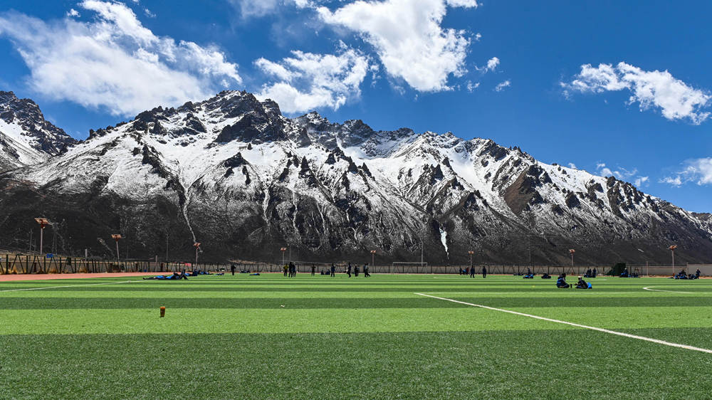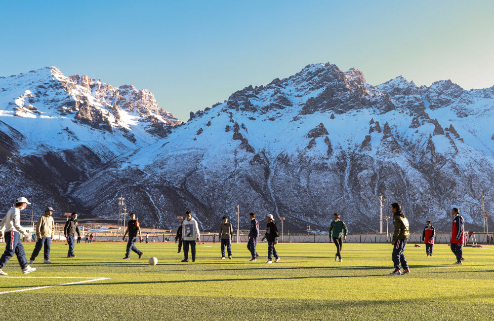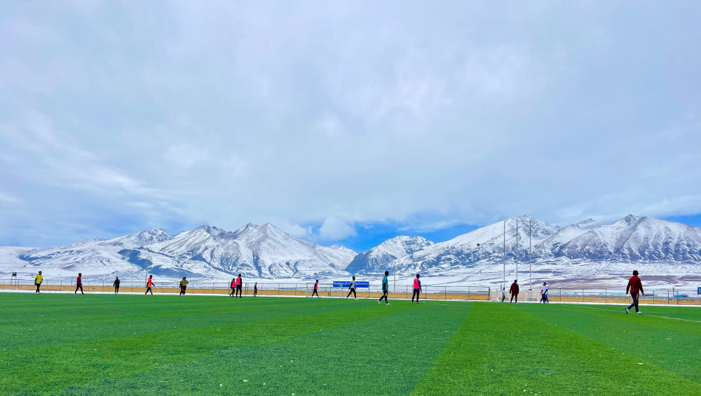 在雪域高原的足球場上