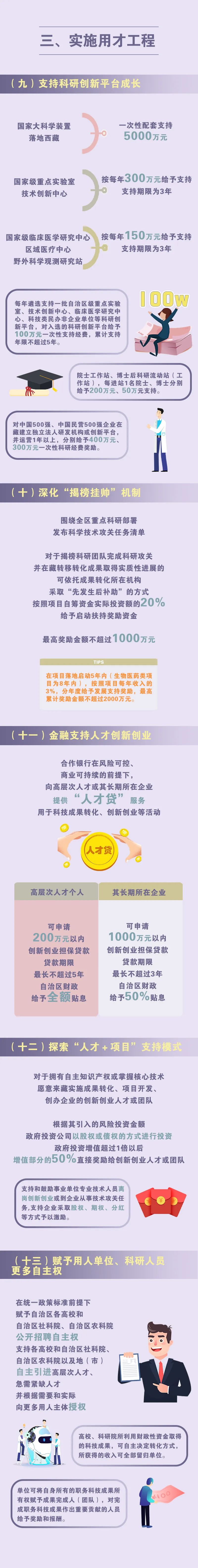 支持科研創(chuàng)新平臺成長,對重點(diǎn)實(shí)驗(yàn)室、技術(shù)創(chuàng)新中心以及院士工作站、博士后科研流動站(工作站)等給予經(jīng)費(fèi)支持。深化“揭榜掛帥”機(jī)制,對完成科研攻關(guān)并在藏轉(zhuǎn)化成果取得實(shí)質(zhì)性進(jìn)展的,給予啟動扶持獎勵資金、發(fā)展支持獎勵資金。向高層次人才或其長期所在企業(yè)提供“人才貸”服務(wù),自治區(qū)財(cái)政予以貼息。鼓勵創(chuàng)新創(chuàng)業(yè)人才或團(tuán)隊(duì)來藏實(shí)施成果轉(zhuǎn)化、項(xiàng)目開發(fā)、創(chuàng)辦企業(yè),政府投資公司參與創(chuàng)新創(chuàng)業(yè)項(xiàng)目,政府投資增值的部分收益可直接用于獎勵。在統(tǒng)一政策標(biāo)準(zhǔn)、嚴(yán)格執(zhí)行規(guī)定前提下,賦予用人單位、科研人員更多自主權(quán)。