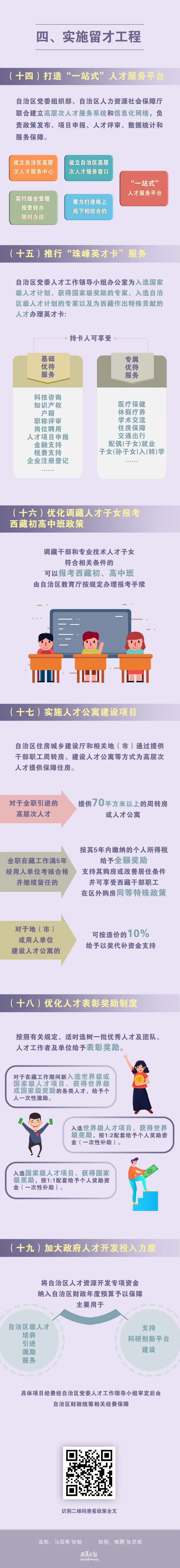 近日,西藏自治區(qū)深入學(xué)習(xí)貫徹黨的二十大精神,聚焦“四件大事”“四個確?!薄⒕哿Α八膫€創(chuàng)建”“四個走在前列”,制定出臺《關(guān)于加強(qiáng)和改進(jìn)新時(shí)代西藏人才工作的若干措施(試行)》(以下稱《若干措施》),大力實(shí)施人才強(qiáng)區(qū)戰(zhàn)略,以創(chuàng)新精神不斷提升人才工作水平?!度舾纱胧饭?9條,從育才、引才、用才、留才等方面制定激勵政策,努力形成優(yōu)秀人才脫穎而出的工作機(jī)制,匯聚各方面優(yōu)秀人才,為西藏長治久安和高質(zhì)量發(fā)展提供強(qiáng)有力人才支持。