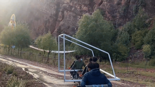 馬利鎮(zhèn)馬利村的村民騎著摩托車把球門運(yùn)回村里。