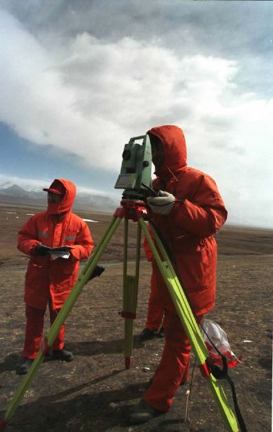 2001年4月,鐵道部第一設(shè)計院的勘測人員在海拔近5000米的四道梁加緊進行青藏鐵路的勘測工作。在國務(wù)院批準修建青藏鐵路后,鐵道部第一設(shè)計院的上千名勘測人員克服惡劣的自然條件,為青藏鐵路早日開工夜以繼日地工作。