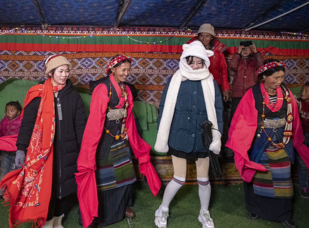 今年已經(jīng)59歲的多吉,生活十分愜意。家里家外,兒子次仁格旦就像他當(dāng)年那樣腦筋活絡(luò)。為保住“村里最好旅館”的地位,次仁格旦做出了不少努力:他在二樓搭了梯子,把屋頂變成珠峰觀(guān)景臺(tái);在晚上游客用餐時(shí)開(kāi)啟表演模式,彈唱扎念琴;在年節(jié)時(shí),他還組織起村里人,和天南海北的游客一起合跳起鍋莊舞。