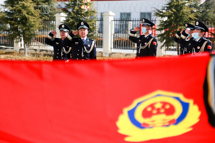 1月9日上午,拉薩鐵路公安處組織迎警旗宣誓儀式,各單位干部民警身著警禮服整齊列隊、莊嚴(yán)肅立,在雄壯激昂的警歌聲中向警旗莊重敬禮。升旗儀式結(jié)束后,全體干部民警面向警旗,舉起右臂,齊聲宣誓中國人民警察誓詞,夯實獻(xiàn)身于拉鐵公安事業(yè)的堅定決心。
