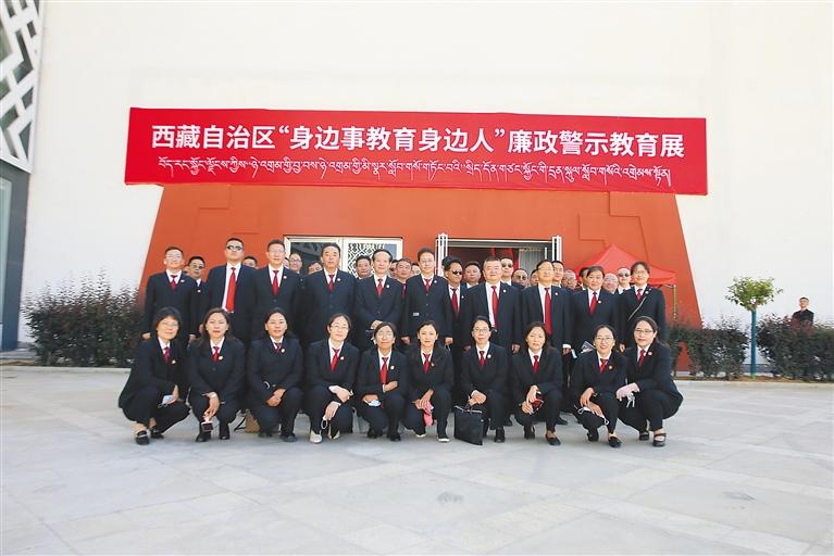 圖為2022年7月8日,自治區(qū)高級人民法院干警參觀西藏自治區(qū)“身邊事教育身邊人”廉政警示教育展合影。