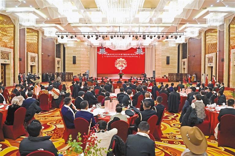 1月17日下午,西藏自治區(qū)2023年春節(jié)、藏歷新年團(tuán)拜會在拉薩舉行,自治區(qū)黨政軍領(lǐng)導(dǎo)與各族各界人士歡聚一堂。 旦增西旦 攝