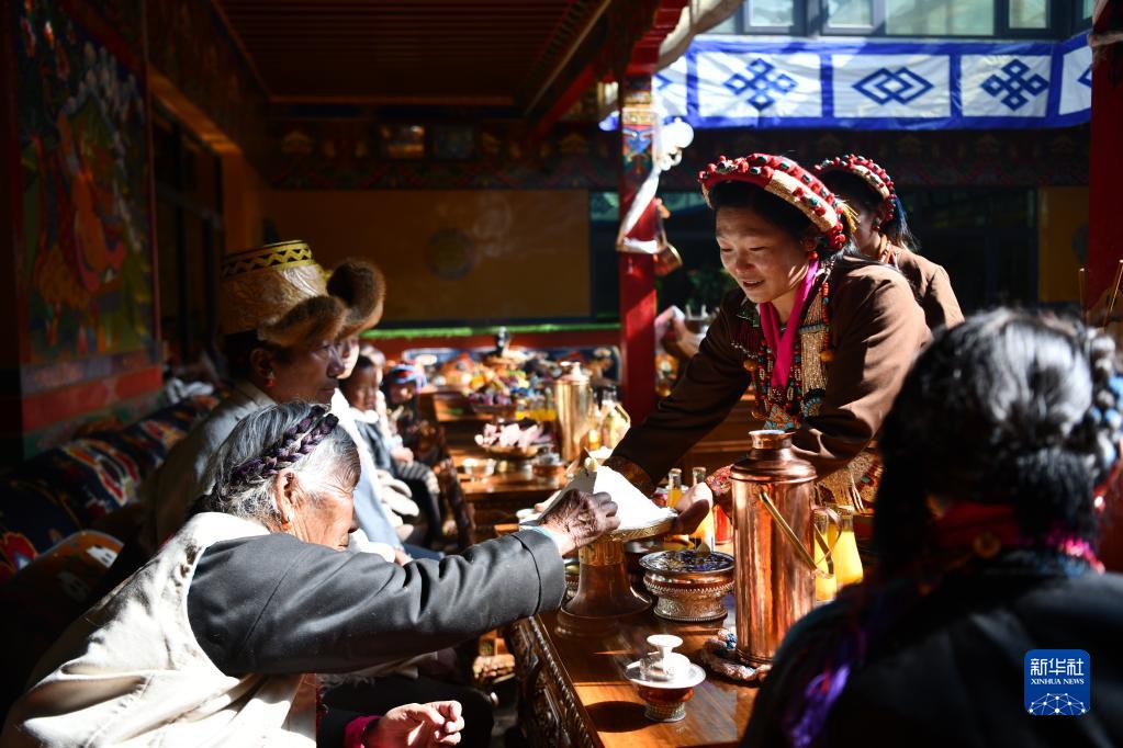 “小時候過年也有羊頭、切瑪可以吃。”次旦老人說,“但和今天不同的是,即便是一年中最豐盛的一頓飯,我們也只能吃兩口嘗個味道,沒辦法敞開肚子吃飽?!?/p>