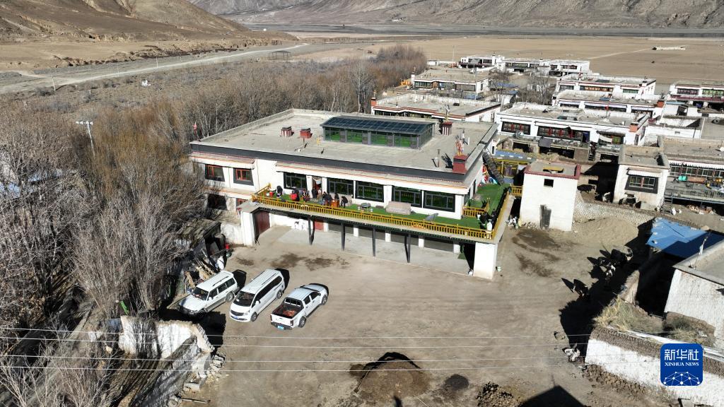 西藏日喀則市拉孜縣扎西宗鄉(xiāng)雜村次旦老人家的二層小樓(1月22日攝,無人機照片)。新華社記者 晉美多吉 攝