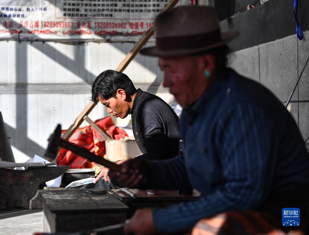 普達(dá)瓦在制作拉孜藏刀(1月19日攝)。新華社記者 晉美多吉 攝