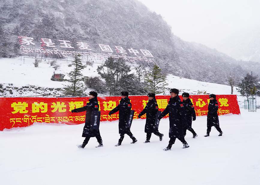 “每年的春節(jié)是玉麥降雪量最大的時(shí)候,積雪覆蓋下的巡邏道,白茫茫的一片,看不出任何區(qū)別。積雪下面可能是深坑,也可能是懸坎。如果是新同志走在前面,那就比較危險(xiǎn)……”王磊表示,玉麥鄉(xiāng)的一草一木對他來說簡直再熟悉不過,他知道下雪期間巡邏哪些地方能走,哪些地方不能走。