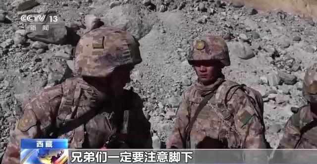 西藏軍區(qū)“高原戍邊模范營”某連連長 潘洪帥:兄弟們一定要注意腳下,每一步都要踩實(shí),現(xiàn)在我們手拉手往上走。