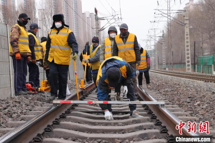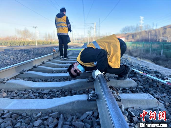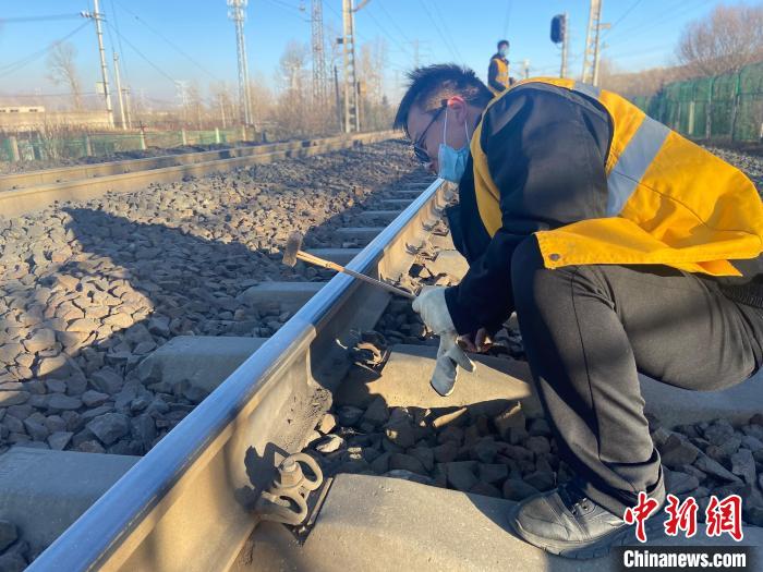 “春運期間,正是鋼軌折斷多發(fā)期,一定要仔細檢查線路的高低狀態(tài),一旦有異常必須立刻記錄解決,決不能馬虎。”走到線路防斷重點區(qū)段時,中國鐵路青藏集團有限公司西寧工務(wù)段湟源線路車間檢查工區(qū)工長侯鵬俯身趴在鋼軌上,仔細觀察并叮囑,锃亮的鋼軌頂面反射著刺眼的白光,在他的臉上一閃一閃。