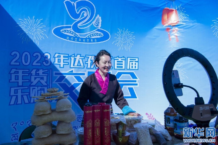 2023年達(dá)孜區(qū)首屆年貨樂(lè)購(gòu)交易會(huì)活動(dòng)現(xiàn)場(chǎng)(2月6日攝)。新華網(wǎng) 旦增努布 攝