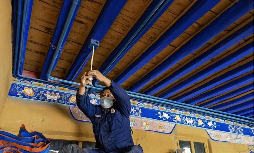圖為檢查消防設(shè)備。圖片由布達(dá)拉宮消防救援大隊(duì)提供