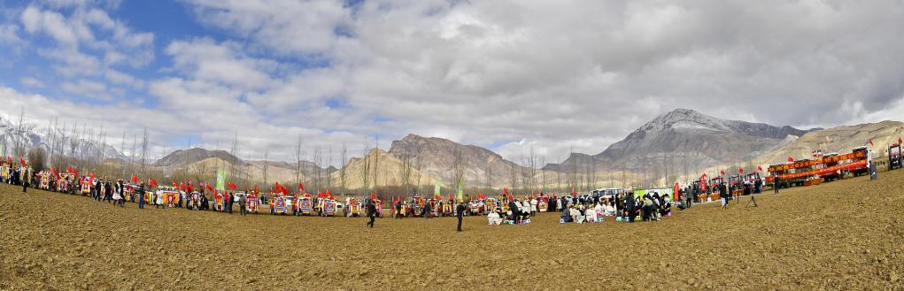 當(dāng)天是藏歷正月二十四日,據(jù)藏族天文歷算,是西藏農(nóng)區(qū)開耕的日子。上午9時許,強(qiáng)嘎村村民身著盛裝,帶著青稞酒、酥油茶等物品聚在田間,共同舉行開耕儀式。