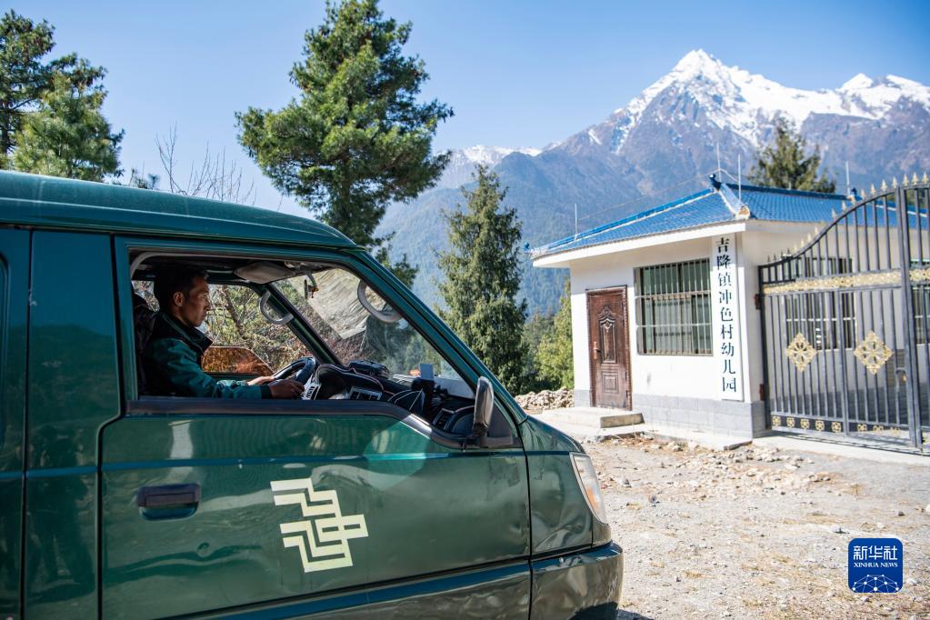 大約過了半個(gè)小時(shí),巴桑頓珠到達(dá)第一站——沖色村幼兒園。他拿起一疊捆好的報(bào)紙,放到了收發(fā)室門口。