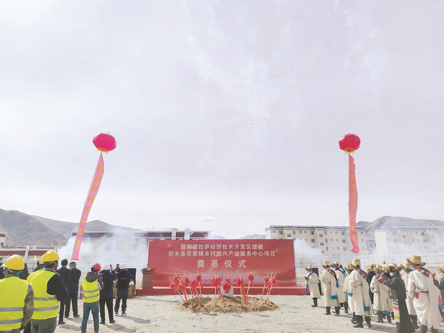 3月20日,拉薩經開區(qū)援建尼木縣塔榮鎮(zhèn)產業(yè)服務中心項目奠基儀式舉行。圖為奠基儀式現場。 拉薩融媒記者 李從芳攝