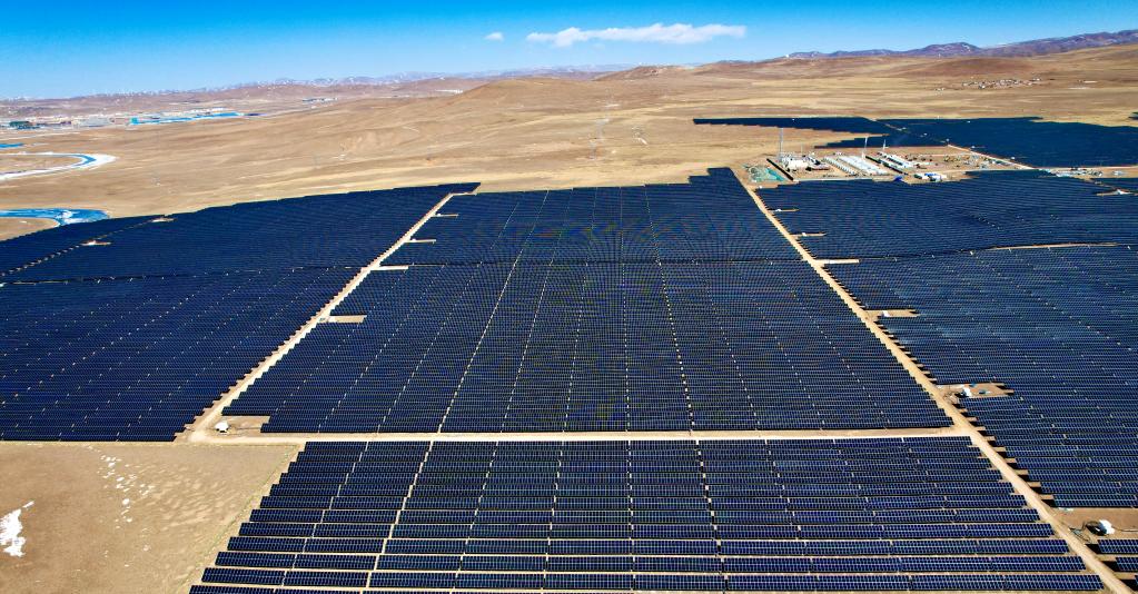 西藏華電那曲色尼區(qū)12萬千瓦光伏發(fā)電電力保供項(xiàng)目全景。新華社記者劉洪明 攝