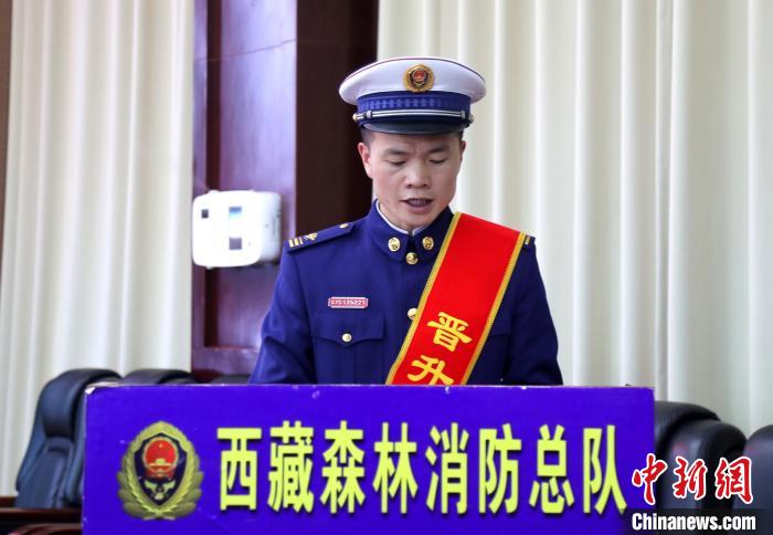 3月22日,西藏森林消防總隊(duì)政委譚程富發(fā)言?!∥鞑厣窒揽傟?duì)供圖