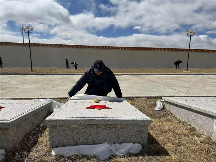 雪山巍峨,藍(lán)天廣闊,白云朵朵,那曲烈士陵園整潔安寧,革命烈士紀(jì)念碑莊嚴(yán)肅穆?;顒?dòng)中,駐村工作隊(duì)隊(duì)長(zhǎng)和村黨員干部、各族群眾一起列隊(duì)整齊,向那曲革命烈士紀(jì)念碑敬獻(xiàn)花圈,全體人員在革命烈士紀(jì)念碑前肅立、默哀,寄托對(duì)烈士的緬懷與哀思。隨后全體人員懷著對(duì)革命先烈的崇敬心情祭掃烈士墓,在烈士墓碑前一一敬獻(xiàn)上鮮花和哈達(dá),聆聽(tīng)著革命先烈為解放那曲各族群眾而壯烈犧牲的可歌可泣的英雄故事,眼神中流露出無(wú)限的緬懷之情。瞻仰結(jié)束后,村黨員干部和各族群眾還來(lái)到烈士紀(jì)念館參觀,在紀(jì)念館副站長(zhǎng)次塔卓瑪?shù)纳钋橹v解中全面了解了西藏和平解放的歷史,深入體會(huì)了在那曲革命建設(shè)中無(wú)數(shù)共產(chǎn)黨員、革命先烈前赴后繼、奉獻(xiàn)高原的崇高精神。