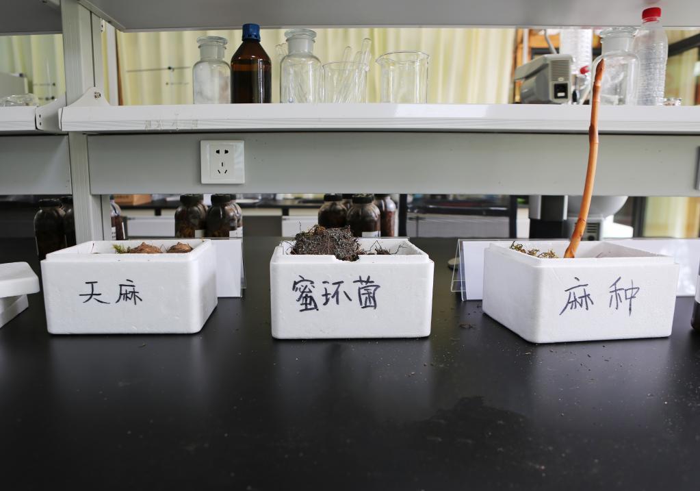 這是天麻種植實驗室內培養(yǎng)的菌類及麻種(3月24日攝)。新華社記者邵澤東 攝