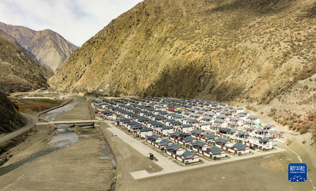 這是西藏山南隆子縣斗玉珞巴民族鄉(xiāng)繞讓搬遷安置點(2023年2月15日攝,無人機照片)。新華社記者 晉美多吉 攝