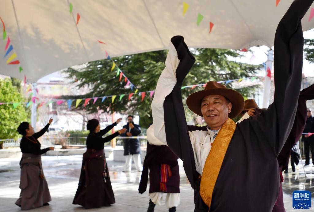 3月28日,拉薩西郊安居苑藏族群眾慶祝西藏百萬農(nóng)奴解放64周年。新華社發(fā) (覺果 攝)