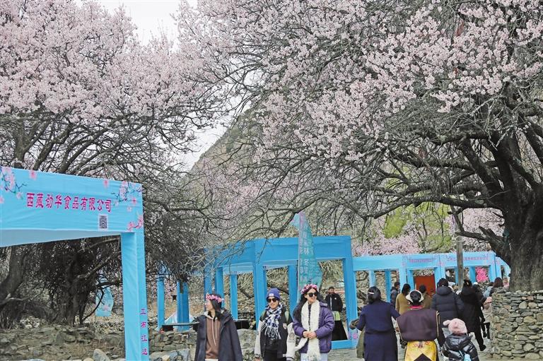 工布江達(dá)縣秀巴千年古堡吸引游客前來(lái)觀賞桃花。