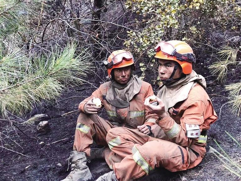 參與滅火任務(wù)后正在休息的陳子明(右)。圖片由林芝市森林消防支隊(duì)提供