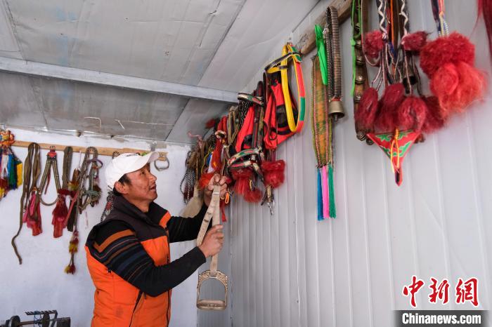 4月26日,強(qiáng)巴整理自己的馬具,他專門有一間房用于堆放馬具。中新社記者 江飛波 攝
