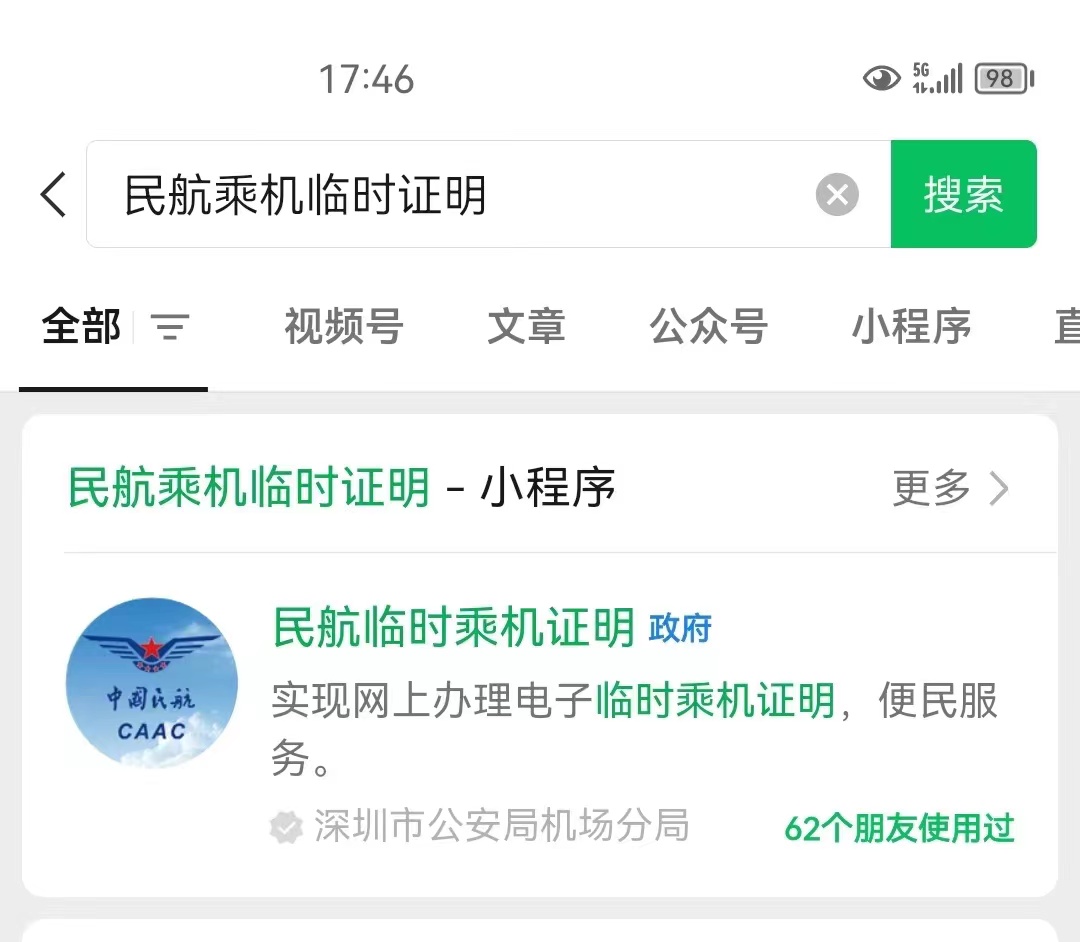 3、請您出示與購票時一致的有效證件辦理乘機手續(xù),以免因證件不符耽誤行程。如身份證過期或丟失,您可以在微信小程序和支付寶頁面搜索“民航臨時乘機證明”小程序進(jìn)行辦理。