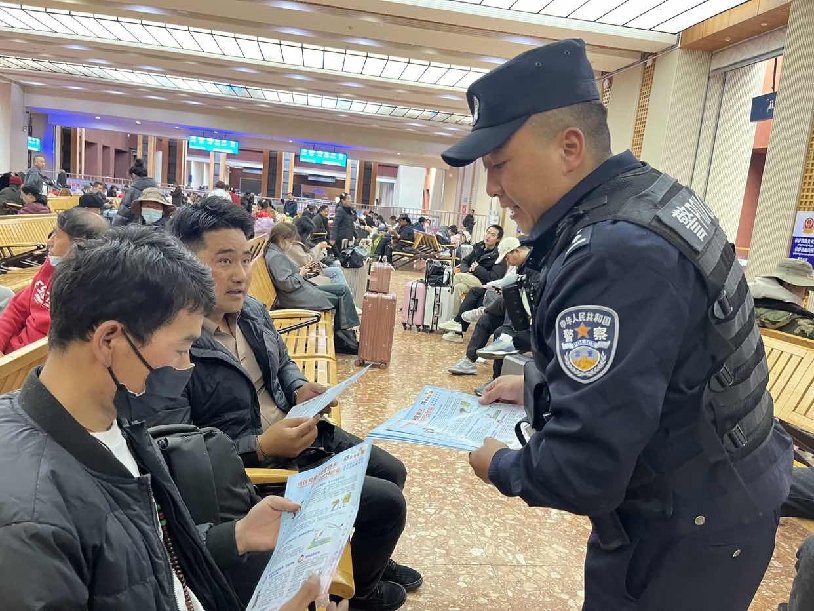 西藏旅游旺季臨近,為更好為廣大旅客提供更加溫馨舒適的旅途環(huán)境。近日,根據(jù)公安部鐵路公安局統(tǒng)一部署,拉薩鐵路警方組織開展為期6個月的“三項治理”專項行動,打擊整治站車霸座、猥褻、強討等慣性違法犯罪行為,排查查處線路隱患,提升站車治安防控和群防群治能力,維護廣大旅客合法權益,努力為廣大旅客平安出行創(chuàng)造更加安全穩(wěn)定的鐵路治安環(huán)境。