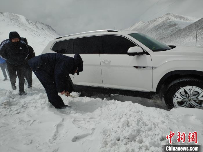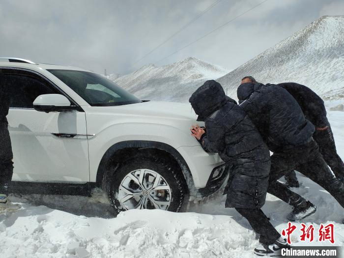 民警隨即打火發(fā)動(dòng)警車,行至被困車輛前面,利用拖車?yán)K連接警車與被困車輛,其余救援人員雙手搭上車輛用力向前推,“一、二、三,加油!”“動(dòng)了,動(dòng)了,車子可以向前移動(dòng)了?!辩P除積雪、鋪撒砂石、推拉車輛……接下來(lái)救援人員用同樣的方法開(kāi)始拖出其余車輛,3個(gè)多小時(shí)后,5輛車、14名民眾全部脫離險(xiǎn)境。所有被困車輛和人員安全抵達(dá)楚魯松杰鄉(xiāng)。